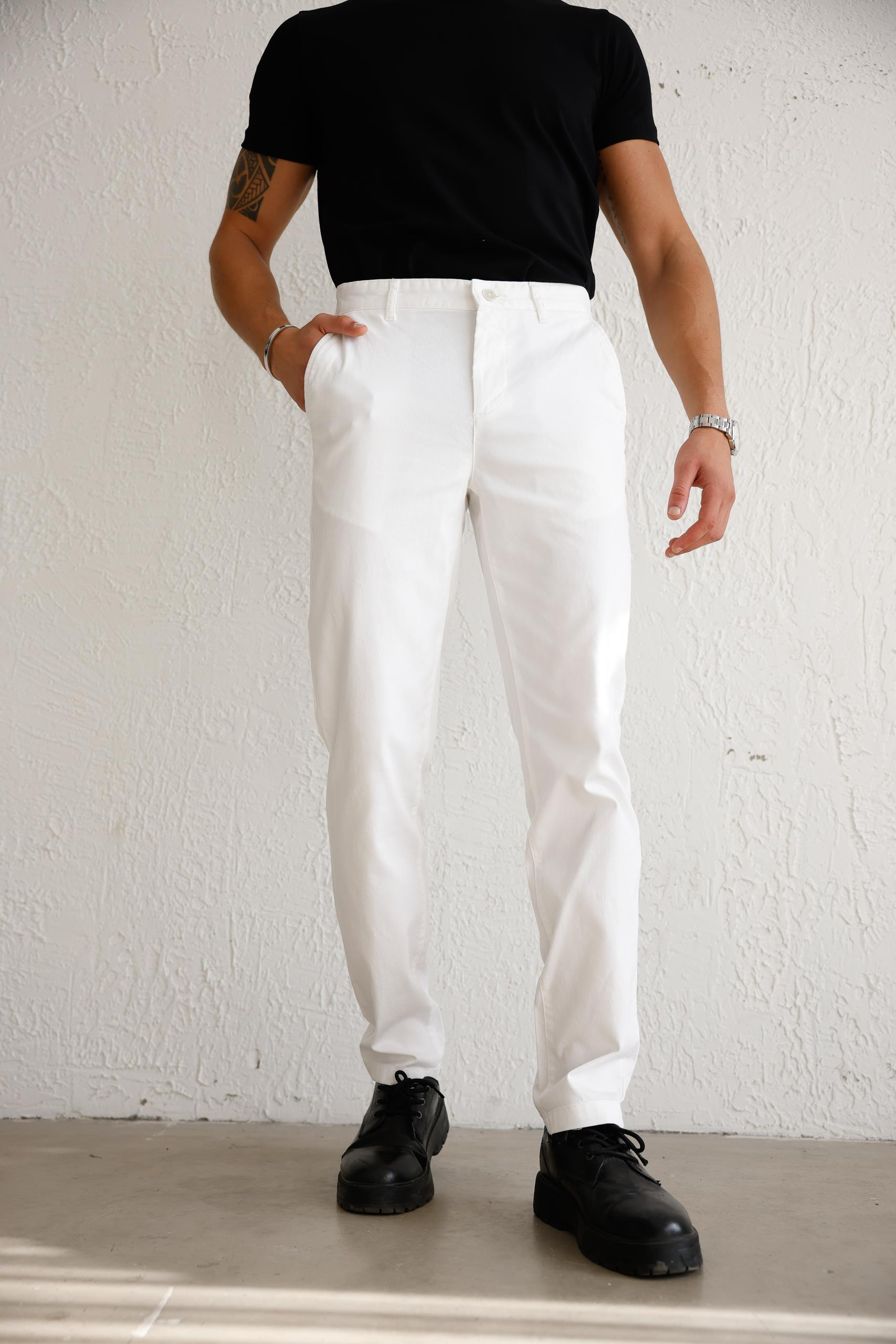 Erkek Armürlü Slim Fit Beyaz Pantolon (BR244170-BEYAZ)