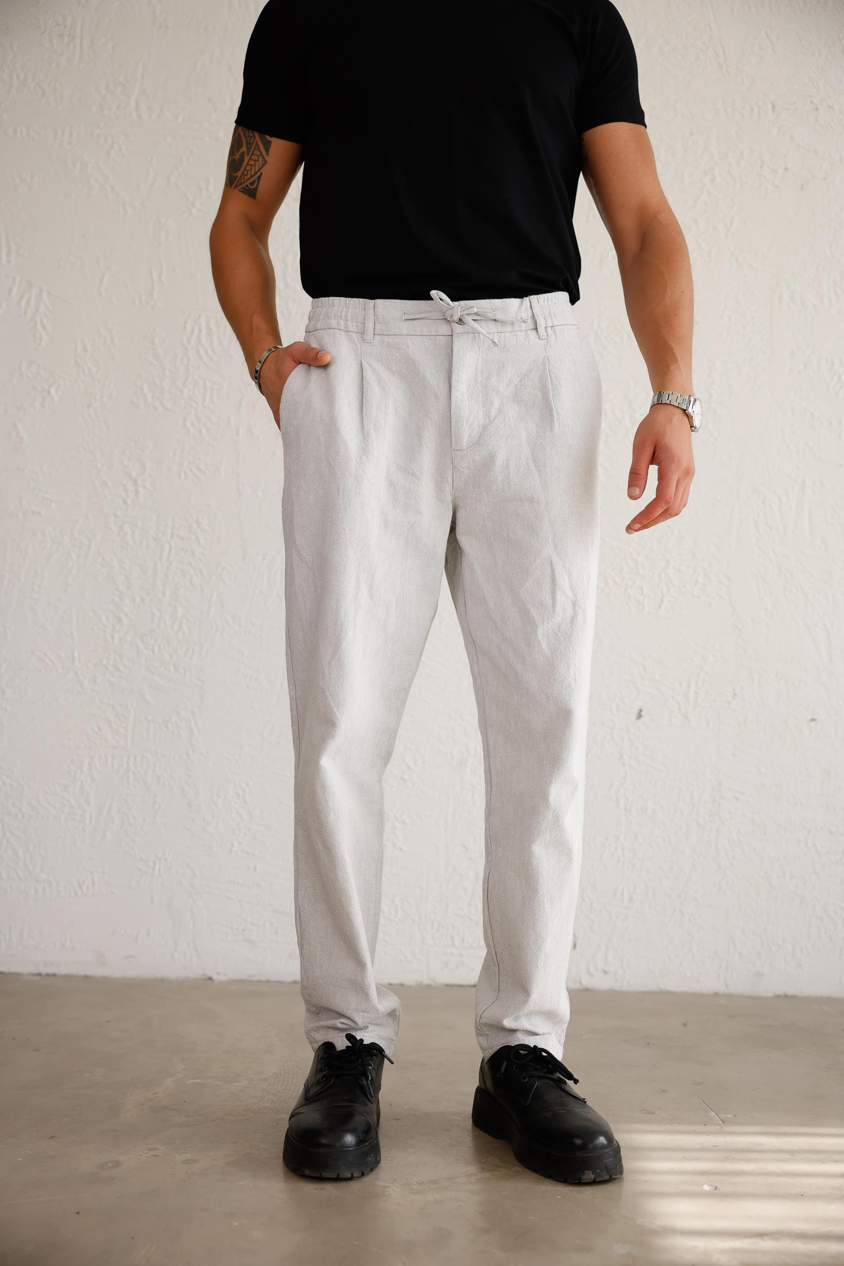 Yandan cepli,Beli lastikli ve kordonlu, Arka cep fleto, Keten karışımlı dokuma kumaş, Relaxed fit, Fermuarlı Chino Pantolon;Mevsimlik kullanıma uygundur.; Stüdyo Çekimlerinde Renkler Işık Farklılığından Dolayı Değişiklik Gösterebilir.; Online Özel koleksiyonu ürünüdür.; Manken Ölçüleri :Bel 93cm, Basen 98cm, Bacak Boyu 100 cm ( Belden topuğa kadar ), Beden 32;%70 Pamuk %30 Keten